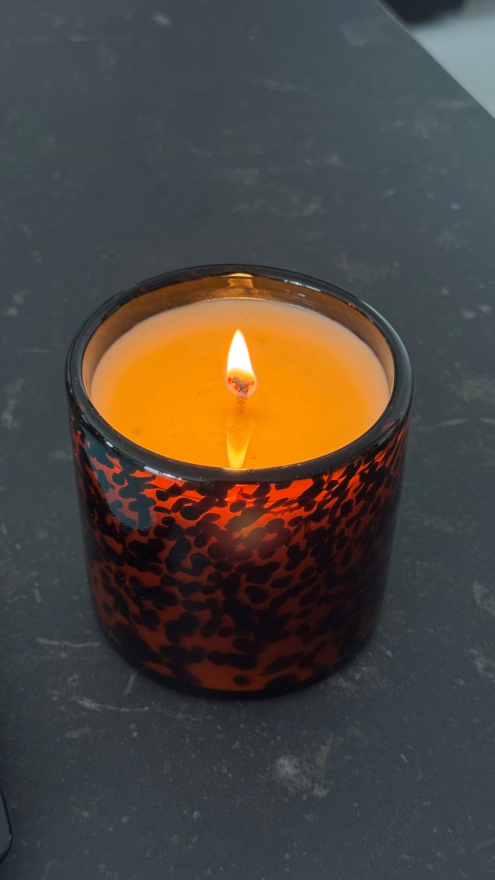 זה לא עוד נר, אלא הצהרה. הכלי המיוחד, שנופח בזכוכית בעבודת יד, מעניק לו מראה יוקרתי וייחודי שכל אחד שם לב אליו. כשהוא בוער, האור מתפזר דרך הדוגמה המנומרת וממלא את הבית באווירה חמה ומזמינה - נרות ריחניים יוקרתיים במלוא הדרם.