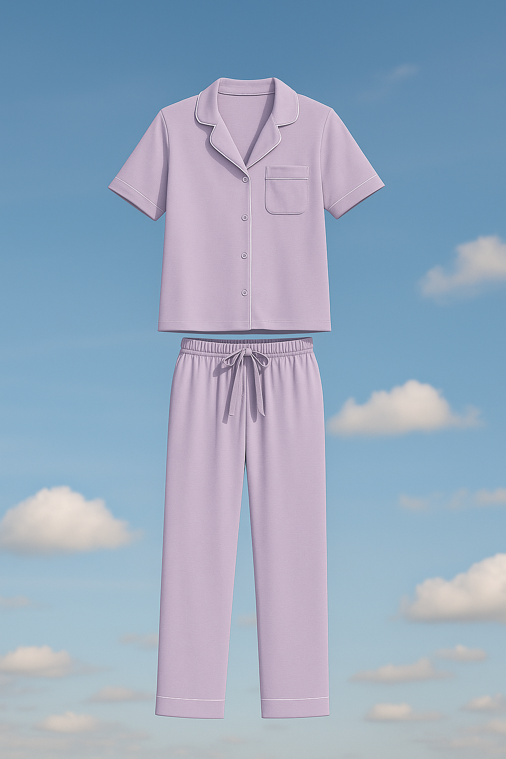 סט פיג׳מה סגולה - חולצה קצרה, מכנסיים ארוכים